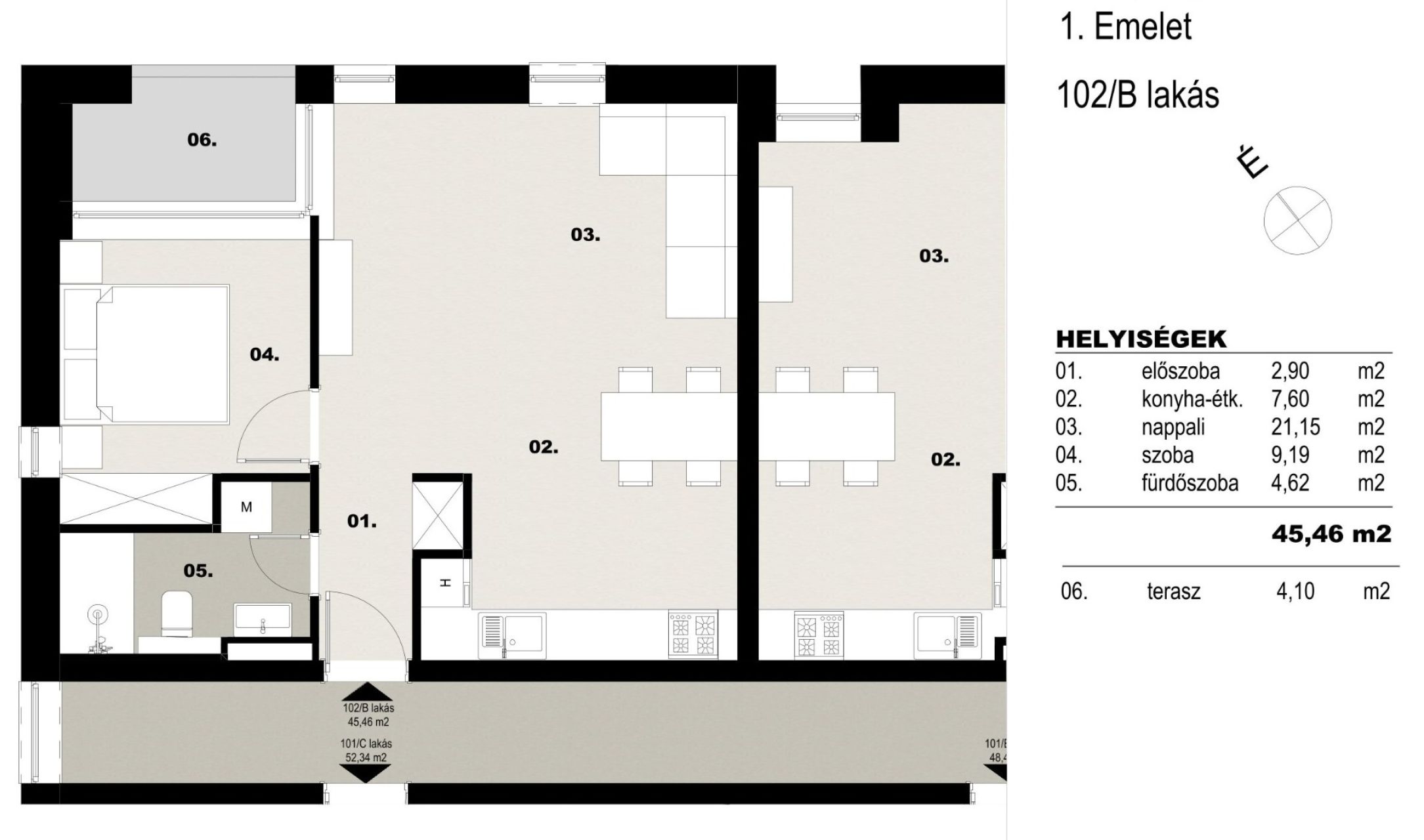 Kiváló lehetőség mindazok számára, akik egy modern, kulcsrakész otthonra vágynak. A 46 m²-es lakótérrel rendelkező ingatlan egy háromszintes épületben található, és minden igényt kielégít. Az ingatlanban 1 hálószoba, egy világos nappali, amerikai konyha, és egy kényelmes fürdőszoba található, valamint egy tágas gardrób. A padlófűtésnek és a hőszivattyús fűtésnek köszönhetően a hideg hónapok is igazán komfortosan telhetnek.